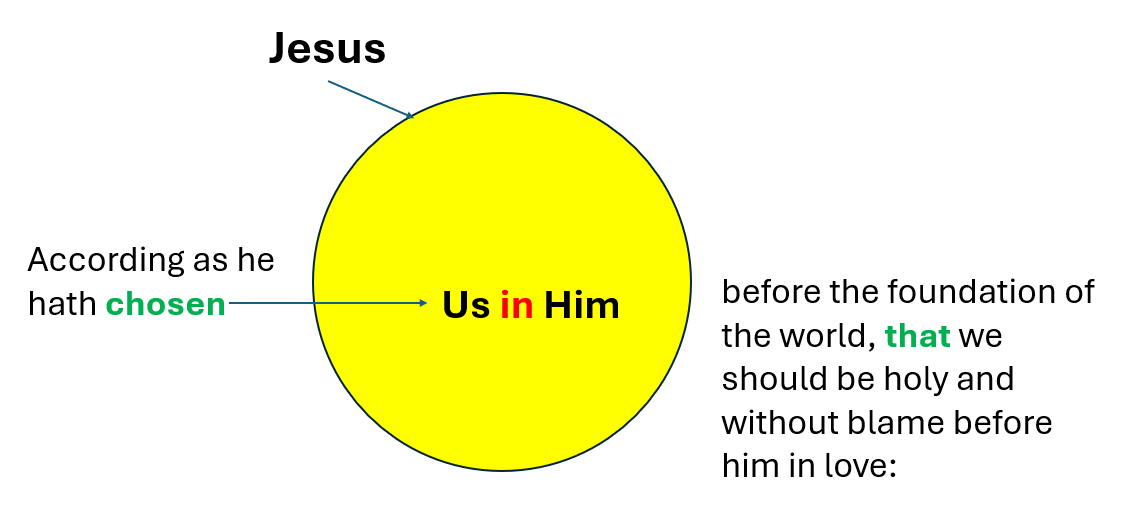 The very important preposition phrase [although only two words] “in him” is ignored. “In him” modifies “us.” God planned beforehand that all those ALREADY in Christ Jesus…