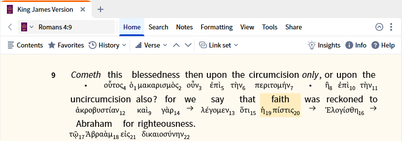 When Paul talks about Abraham’s faith the word “faith” is not found in the Genesis account. And even the Septuagint does not use the word “pistis” in that passage. Genesis 15:6 states that “Abraham believed God and it was counted to him for righteousness.” In Romans 4:9, Paul called Abraham’s belief, “pistis” which is translated “faith” in the New Testament.